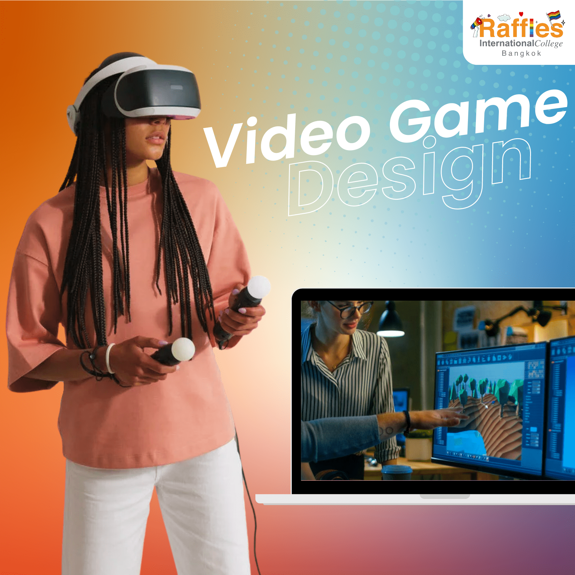 Raffles International College สถาบันเพื่อสร้างนักธุรกิจด้านการออกแบบมืออาชีพแห่งแรกของประเทศไทย ก่อตั้งขึ้นในปี 2003 กรุงเทพฯ โดยพื้นที่ 1,900 ตารางเมตร เป็นสถาบันอุดมศึกษาเอกชน มาตรฐานระดับสากล เปิดสอนวิชาด้านการออกแบบและบริหารธุรกิจ อาทิ สาขาวิชาการออกแบบแฟชั่น สาขาวิชาการตลาดแฟชั่น สาขาวิชาการออกแบบกราฟิก สาขาวิชาการออกแบบและตกแต่งภายใน สาขาวิชาการออกแบบมัลติมีเดีย และสาขาวิชาการออกแบบผลิตภัณฑ์ และสาขาวิชาทางด้านการบริหารธุรกิจอีก 5 สาขาวิชา มีการร่วมมือทางวิชาการอย่างเต็มรูปแบบกับมหาวิทยาลัยในประเทศอังกฤษอย่าง มหาวิทยาลัยนอร์ทัมเบรีย ประเทศอังกฤษ (Northumbria University) โดยเปิดการเรียนการสอนในหลายสาขาวิชาด้วยหลักสูตรภาษาอังกฤษทั้งหมด ได้รับรางวัลชั้นนำระดับนานาชาติหลายรางวัล